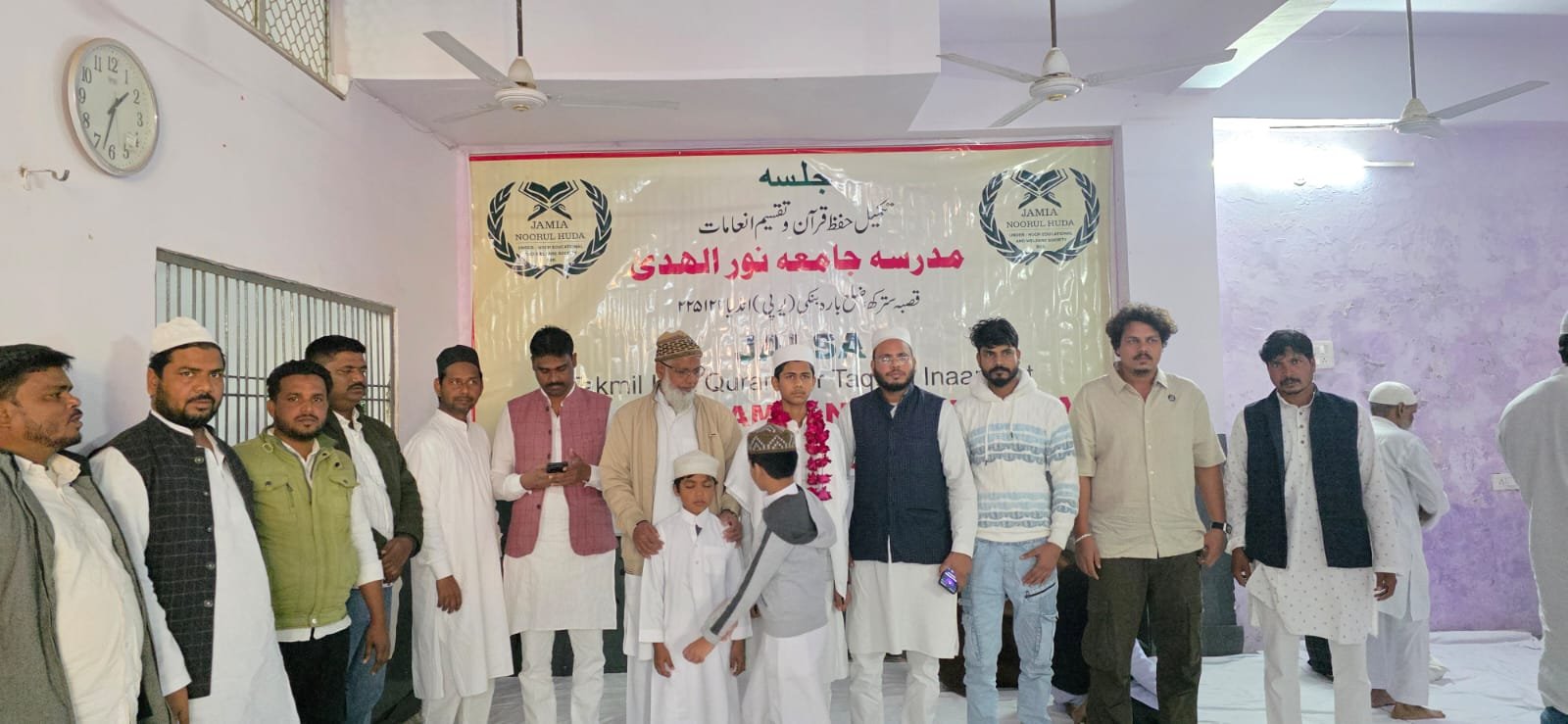 सतरिख बाराबंकी। मात्र 14 वर्ष की आयू में पूरा कुरान-ए-पाक याद कर हाफिज-ए-कुरान बनने का गौरव हासिल करने वाले पूर्व प्रधान अब्दुल तव्वाब के पुत्र मोहम्मद यूसुफ की उपलब्धि पर क्षेत्र में खुशी की लहर। मदरसा जामिया नुरुल हुदा, कस्बा सतरिख में आयोजित समारोह में बधाई देने वालों का तांता लग गया। इस अवसर पर बलछत प्रधान आफताब आलम, हाजी सब्बार (अब्दुल तव्वाब के पिता), मोहम्मद नायाब, जीशान, शान मोहम्मद सहित कई सामाजिक लोगों ने हाफिज मोहम्मद यूसुफ को फूल-मालाएं पहनाकर और तोहफे देकर मुबारकबाद दी।